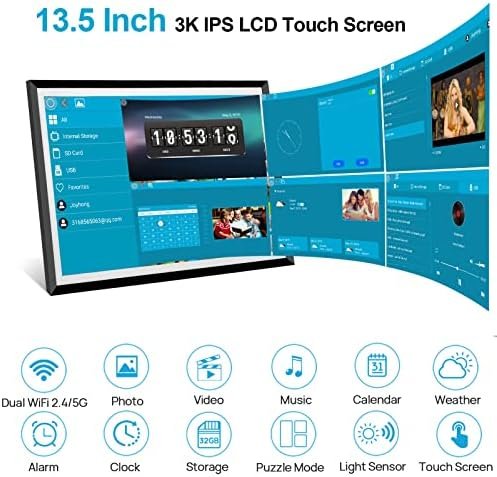 【3K IPS TOUCH SCREEN & LIGHT SENSOR】The 13.5″ 3K IPS touch screen with 3000×2000 resolution can display amazing clear and vivid landscape and portraits, recalling your precious memories. The light sensor makes the frame automatically adjust the brightness to give you a special viewing experience.
