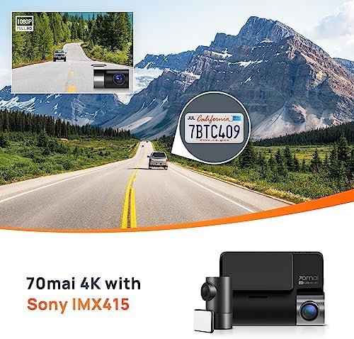 70mai True 4K Dash Cam A800S with Sony IMX415, Front and Rear, Built in GPS