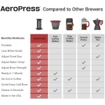 BETTER THAN FRENCH PRESS: No more bitterness or grit. The patented 3 in 1 brew technology of the AeroPress Original Coffee maker eliminates bitterness and acidity and creates a smooth, rich, full bodied cup of coffee. Paper or metal micro-filters allow you to use finer ground coffee for a faster brew time and no grit (unlike the mesh filter of a French press). No more messy coffee grounds – clean-up takes seconds! Durable, shatterproof design, perfect for travel, camping & gifting.