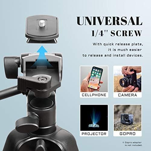 COMPATIBLE WITH VARIOUS DEVICES – 1/4″ standard screw tripod head can work with Laser Level/Digital Camera/Compact DSLR/Camcorders/GoPro (GoPro adapter is not included)/Projector/LED Video Light/Microphone/Ring Flash Light and accessories with standard 1/4″ thread hole.