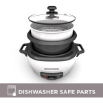 Dinner is easier with the BLACK+DECKER 6-Cup Electric Rice Cooker. Cooking takes just 20-30 minutes, and the unit keeps the delicious, fluffy rice ready to serve long after cooking is complete with an automatic “keep warm” function. Use it as a food steamer, too! The included steaming basket lets you prepare healthy meals with vegetables, fish, and more. Cleanup is a cinch with the dishwasher-safe, nonstick rice pot and tempered glass lid. Plus, you can use the electric cooker to prepare soups, stews, and even oatmeal! With a 1 to 6-cup capacity, this electric rice cooker is great for small and large servings. Dishwasher-Safe Parts – The rice pot and tempered glass lid can be cleaned in the dishwasher.