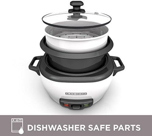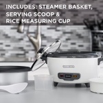 BLACK+DECKER Rice Cooker 6-Cup (Cooked) with Steaming Basket, Removable