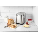 Everybody loves homemade bread, but not everybody has time to make it. Let Cuisinart do it for you! our versatile and compact automatic bread maker offers a variety of crust colors and loaf sizes, as well as 12 preprogrammed menu options. Foolproof recipes include everything from gluten-free and artisan breads to jams and sauces. With a convenient 13-hour delay-start timer, that wonderful aroma of just-baked bread can be waiting for you when you wake up. Features: Compact vertical bread maker with stainless steel exterior|12 preprogrammed menu options – fully automatic easy to use|3 crust shades – light medium or dark|Bakes up to a 2-pound loaf|Viewing window to monitor the process|Removable kneading paddle and bread pan|Interior light to check bread as it bakes|Easy-to-read LED display|Bake-Only option|13-hour delay start – fresh bread anytime!|Power failure backup|BPA-free|Limited 3-Year warranty.