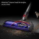 De-tangling Motorbar cleaner head deep cleans carpets and hard floors with hair removal vanes to clear long hair and pet hair from the brush bar.