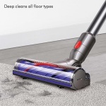 The Dyson V8 cordless vacuum cleaner is engineered with the power, versatility, tools and run time to clean homes with pets. Dyson’s de-tangling Motorbar™ cleaner head deep cleans carpets and hard floors with hair removal vanes that clear long hair and pet hair from the brush bar. The innovative Hair screw tool with a conical brush bar is perfect for cleaning upholstery and pet beds. The Dyson V8 has advanced, whole-machine filtration that captures pet dander and fine dust, expelling cleaner air. Thanks to the cordless format, it also transforms into a handheld vacuum with one click so you can clean up high, down low and everywhere in-between. Comes with a 2-year warranty and lifetime Dyson support.