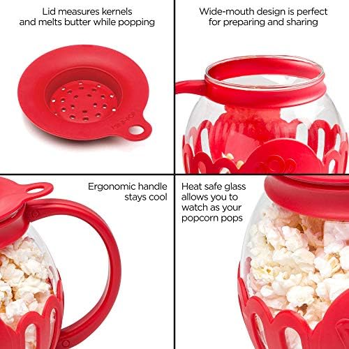 WHY GLASS IS BETTER: Watch your popcorn popping for perfect results. Temperature safe glass resists wear-and-tear and will not absorb acids or chemicals typically produced during use. Glass is made without BPA, hypoallergenic, and thermal shock resistant. Wide-mouth design and ergonomic handle add versatility and ease-of-use.