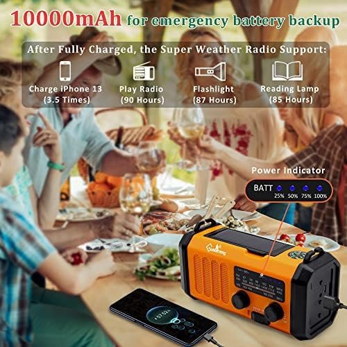⛺【HOME & OUTDOOR NECESSARY】The portable emergency weather radio for home outdoor survival is IPX4 waterproof and very compact for outdoor usage: weight 1LB & dimension is 6.2*3.1*2.3inch. Upgrade your emergency bag with Gustermmy best portable solar hand crank weather radio and phone charger, you won’t regret having it!