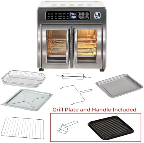 Extra-large 26-quart capacity serves 4–6 people – rotisserie a 6-lb chicken, bake a 12” pizza