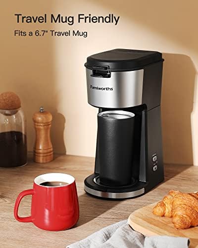 Compact Size and Perfect for Cups On The Go – This mini coffee maker doesn’t take up a lot of counter or cabinet space and is easy to transport, so you can take it with you when camping and traveling. This small coffee maker accommodates travel mugs up to 6.7″ tall and the removable drip tray can hold a full accidental brew for easy cleanup.