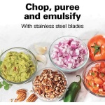 Easily chop, puree and emulsify with stainless steel blades: Durable stainless steel blades make easy work of a multitude of ingredients including onions, carrots and nuts. Oil dispenser on lid makes it easy to emulsify dressings, dips and sauces.
