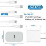 【Portability Design】3 Pack USB C fast charger with 6ft type C to lightning cord suit for different occasions. A Portability and lightweight design, you can use your devices while charging with a adapter in your living room, sofa, office and traveling.