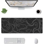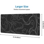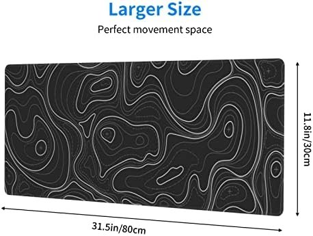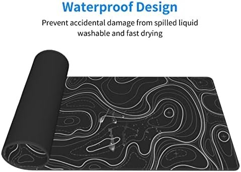 Large Gaming Mouse Pad Black Topographic Contour Mouse Pad with Stitched Edges