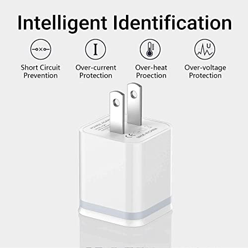 Package includes: 5-Pack Dual Port USB wall charger with 3ft + 6ft + 10ft charger cable cord.