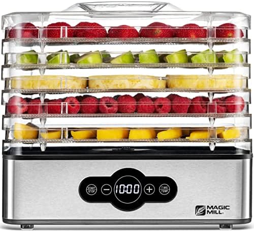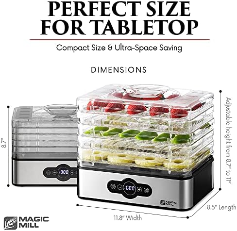 POWERFUL FOOD DRYING PROCESS – Magic Mill Compact Food Dehydrator Machine streamlines 240W drying capacity that offers an efficient food drying process. It removes excess water from foods without compromising their natural juices, taste, and nutrients – boasting a 97% retention rate of vitamins and minerals.