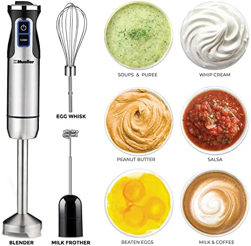 No More Lumpy Chunks – Mix, blend, whisk, and froth quickly with our slim yet powerful immersion blender. Includes detachable accessories to make smoothies, whipped cream, even beaten eggs.