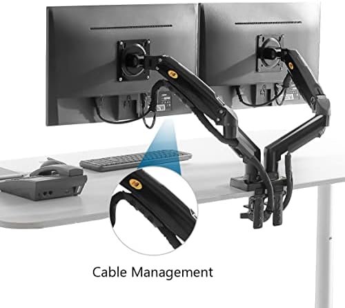 FULLY ADJUSTABLE RANGE: Your two screens will have 360° rotation, tilt angle +85° to -30°, swivel ±90° Upright up to 10″(260mm) and max extension is 20.8″(530mm). Both arms of the desk mount can be easily adjusted anyway you would like.