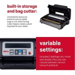 BUILT-IN STORAGE & BAG CUTTER: Conveniently stores any brand of vacuum sealer bags in unit, while the bag cutter helps to create custom bag sizes for your needs