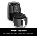 WHAT’S INCLUDED: Shark Air Fryer, 4 Quart Nonstick Basket, Crisper Plate, & 20 Recipe Booklet.