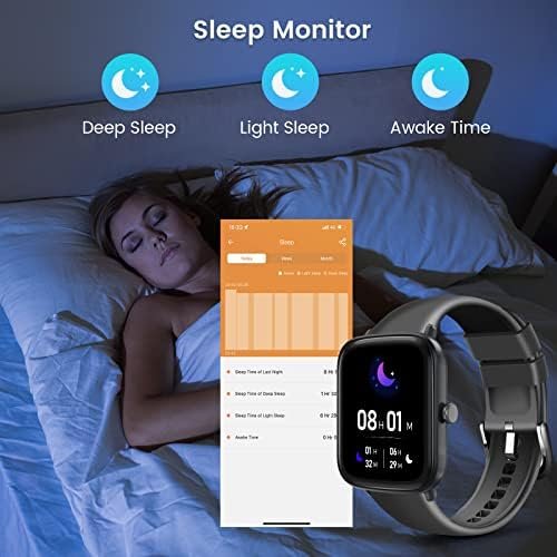 【Advanced Health Features】- With our smartwatch, you can monitor your heart rate,blood oxygen (SpO2), and your deep and light sleep status in real-time to help you better understand your health condition and adjust your lifestyle rationally. You can view your status summary in the APP