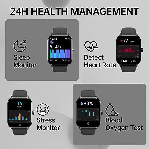🩸【All-day health tracking, in-depth health care】The fitness tracker watch contains heart rate monitor, blood oxygen (SpO2) monitor, step tracker, sleep monitor, stress monitor and more. This smart watch can take care of your physical and mental health, perfect watch for women and men.