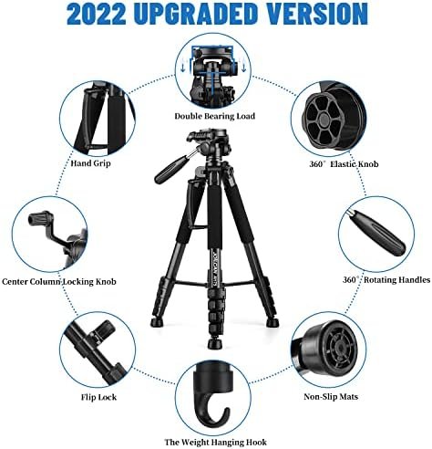 Tripod Camera Tripods, 74″ Tripod for Camera Cell Phone Video Photography
