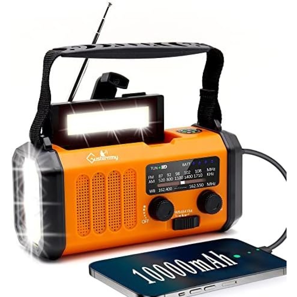 Emergency Hand Crank Weather Radio with 10000mAh Battery Backup,Type-C Charging